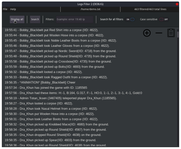 - The interface was a total recycling of logs-filter-2, a software I made. I just changed the position of the toolbar and used a blue theme.